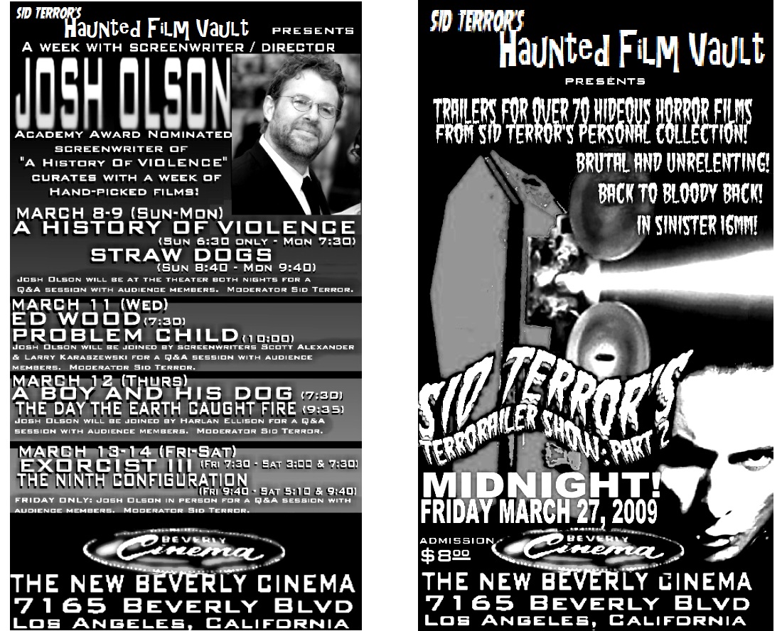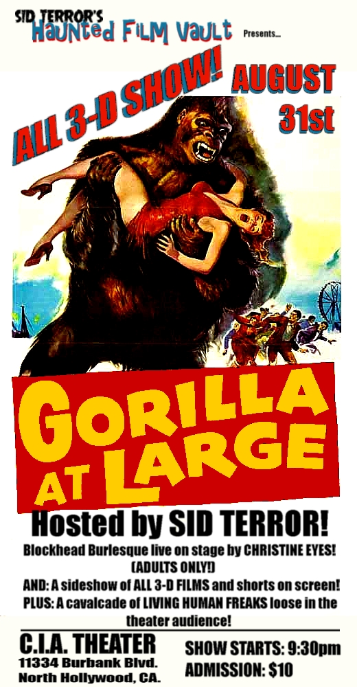 Sid Terror is a name that has enough of a draw on it's own (due to his being both the singer of the seminal Horror Punk band SID TERROR'S UNDEAD and being a respected film historian in his own right) that several shows featuring a suprise unnamed movie have been done with only his name being used as a draw.